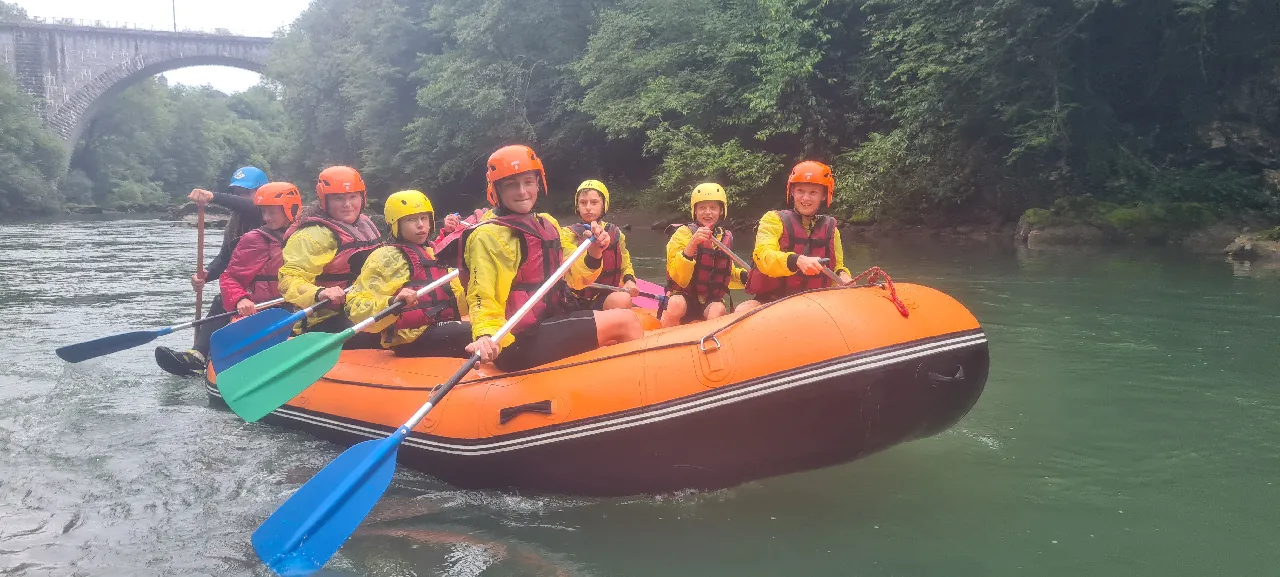 Descente maîtrisée et accompagnée de près par le moniteur Breveté d’Etat présent dans le bateau gonflable. Cette embarcation pouvant recevoir jusqu’à 10 personnes te familiarisera avec les sports d’eaux vives. Arrivé en bas et plein d’entrain, tu pourrais repartir de suite mais attention, les autres descentes te réservent bien des surprises !